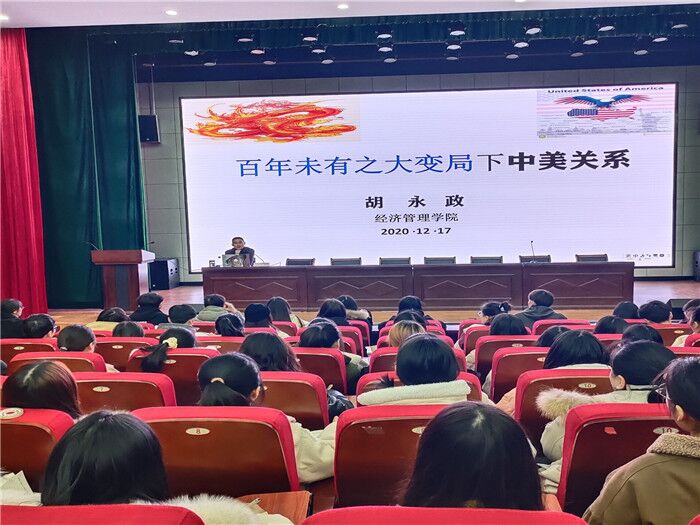 12月17日晚,十大买球投注网站党委书记胡永政在横江校区报告厅给学院学生第一党支部全体党员上“百年未有之大变局下中美关系”为主题的党课,学生第一党支部全体党员参加此次党课学习。