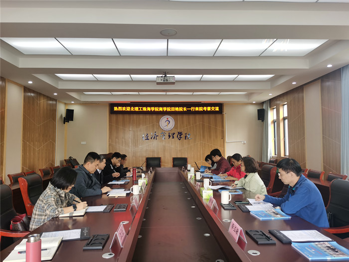 4月15日上午,北京理工大学珠海学院商学院院长田艳、副院长王坤、商学院智慧城市管理研究院院长张发等一行6人来十大买球投注网站进行考察交流。该院党委书记胡永政、院长赵士德、教研室主任方微、方亮、崔鑫等参加座谈会。双方就课程思政建设、人才培养、专业建设等方面的工作进行交流探讨。