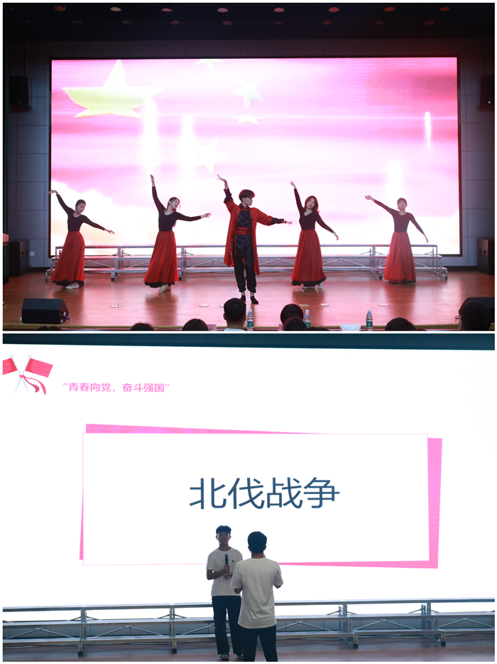 活动在舞蹈《灯火里的中国》中拉开序幕,绚丽的舞姿同爱国的心一齐跳动;党史知识竞猜环节将活动的气氛推向了高潮,人人参与方式的党史学习,激发了青年学子对党史学习兴趣,弘扬了红色文化精神;随后,2020级市场营销对口团支部全体成员带来大合唱《光荣啊,中国共青团》,同学们蓬勃的朝气、飞扬的歌声充分体现了当代青年大学生积极向上的精神面貌;合唱结束后,2020市场营销对口团支部的团支书汪健带领本支部全体团员重温入团誓词,重在唤起每一位团员的团员意识,时刻牢记自己是一名共青团员,自觉加强组织性和纪律性,进一步加强团支部的向心力与战斗力,做坚强党的后备军。