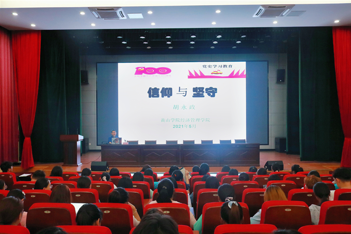5月10日晚,十大买球投注网站在横江校区报告厅举办党史学习教育专题讲座。该院党委书记、教授胡永政作题为《信仰与坚守》的专题辅导报告,学院近300人参加此次报告会。