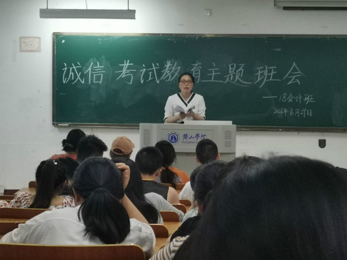 6月29日,18会计班在横江校区1102教室召开“诚信考试教育主题班会”,会议由辅导员汪玉玲主持。