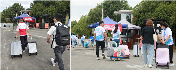 学院设立迎新报到站,由新生辅导员和学生干部组成,帮助学生办理入学等相关手续,贴心服务新生。
