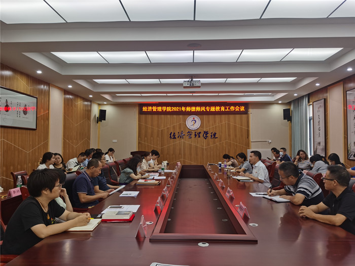 9月30日下午,十大买球投注网站在行政楼会议室召开2021年度师德师风建设工作会议,学院全体教职工参加会议,会议由学院党委书记胡永政主持。