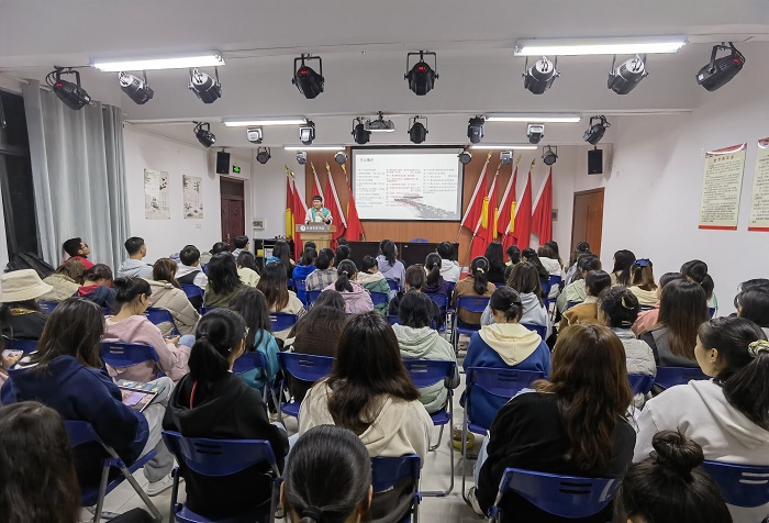 为深化党史学习教育,11月19日,十大买球投注网站在党员活动中心举办第二十七期读书分享会,本次活动主题为“党史人物故事我来说”。十大买球投注网站党委书记胡永政,党委委员办公室秘书江红、党委委员专职组织员、学生支部书记汪玉玲和学生支部书记、专职辅导员蒋璐璐参加此次活动,读书分享会由王璐蕙子同学主持。