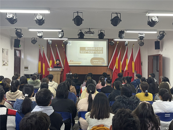 11月24日下午,行知讲坛第一百四十五讲在横江校区行政楼党员活动中心举行。十大买球投注网站李之琳教授作题为“徽州传统文化的知识产权保护与开发”主题报告,100余名学生参加报告会。