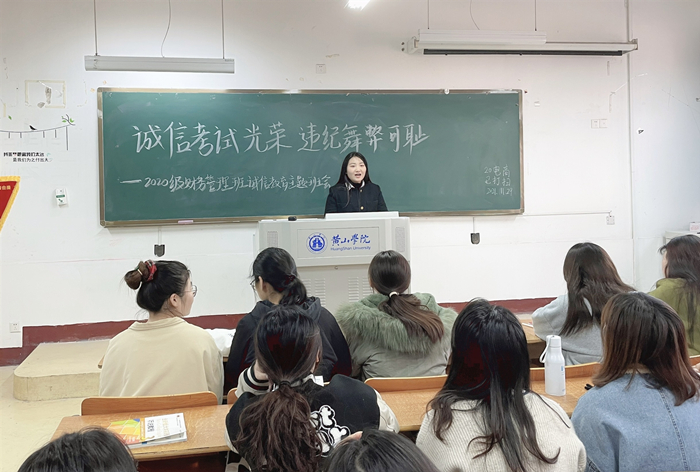 12月15日,2020级财务管理班在横江校区1301教室召开诚信教育主题班会,本次班会由学习委员李鑫主持,辅导员李斌跟班指导。
