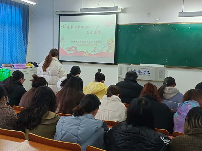 2月26日,十大买球投注网站学生第三党支部通过集中观看方式,组织支部学生党员在横江校区1301教室观看《长津湖》。