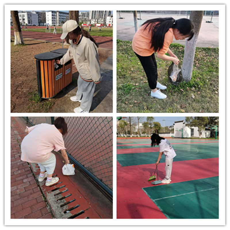 此次活动的主要内容是维护校园公共环境,清扫校园操场上的垃圾。活动开始前由班级学生自发报名,最后由报名前八名的学生参加。活动开展中,八名学生分为四组,分别负责羽毛球场,篮球场,乒乓球台和轮滑场,学生们在活动中将校园操场上的垃圾和落叶清理干净,使学校操场变得干净整洁。