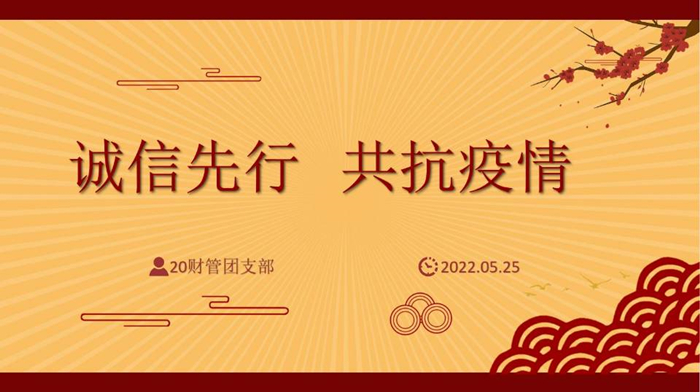 该学院将疫情防控与学生诚信教育相结合,各班级相继开展主题班会等活动。结合学生工作要点,将诚信教育与疫情防控学生管理相结合,严格落实钉钉打卡、出入门禁制度;将诚信教育与学风建设相结合,建设诚信班级、诚信课堂、诚信宿舍、诚信个人,让秉信立行观念融入班级建设、课堂学习、学术研究和宿舍生活,使诚实守信蔚然成风。