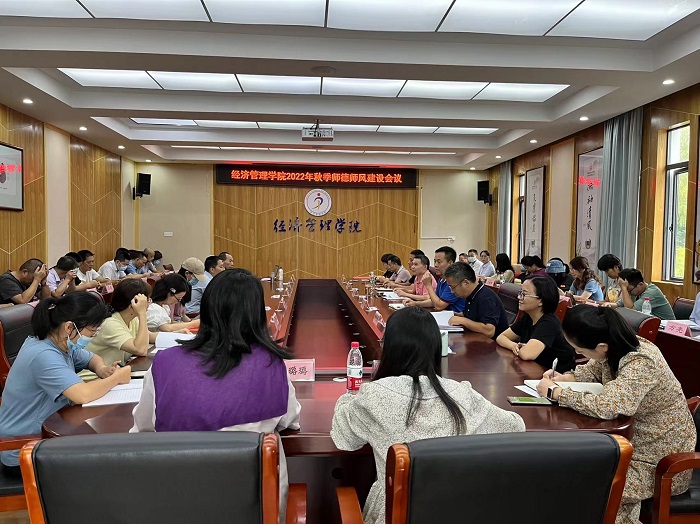 9月14日,十大买球投注网站召开2022年秋季师德师风建设会议,该院党委书记胡永政,党委副书记、院长赵士德,党委副书记、纪委书记吴边,党委委员、副院长郭宏斌出席,全体教师参会。会议由胡永政主持。