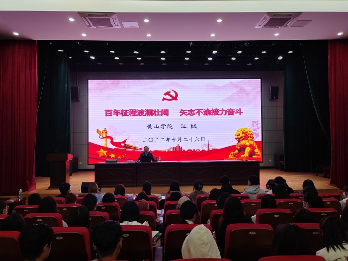 党课上,汪枫以“百年征程波澜壮阔 矢志不渝接力奋斗”为主题,围绕百年党史、百年团史,向同学们全面细致的讲解了中国共产党走过的百年辉煌,中国共产主义青年团创造的百年荣光。同时呼吁广大入党积极分子,要以史为镜、以史明志、知史爱党、知史爱国,要志存高远,为实现中华民族伟大复兴的中国梦贡献自己的青春力量。