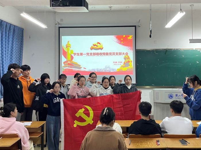 2022年11月16日,十大买球投注网站学生第一党支部于教学楼1201教室召开吸收预备党员支部大会。会议由支部书记李金云主持,学生第一党支部全体党员参加。